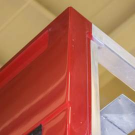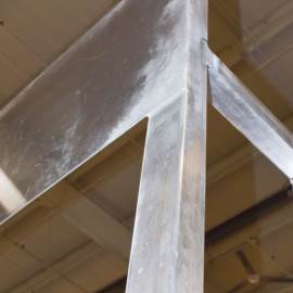 Beginning with a 3-D digital model, the frame is configured to the proper specification. Each piece of extruded aluminum tubing is cut and welded in-house. Next, the sidewalls are attached. This step presents the weld radius that has caused so much time in rework: where the sidewalls attach to the frame. On a flat surface, any pits in the weld could be filled in and painted over but, here, any type of filler would flake off with usage and weather. This edge has to be solid metal.