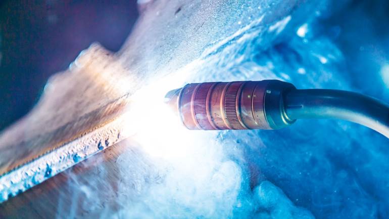 Solid and flux core wires are used in these processes. Consistent wirefeeding is key to ensuring that the process remains stable, which is guaranteed by a four-roller drive. A push-pull system with multiple drive units is recommended for wires with low rigidity or long hosepacks. The welding torch also plays an important role; during high performance welding, the welding torch is subjected to high temperatures from the weld pool on one side and the high current density between the contact tip and the wire on the other. For this reason, water-cooled welding torches must be used during this type of welding process. Cooling is also of utmost importance when it comes to ensuring a long duty cycle at a high power level.