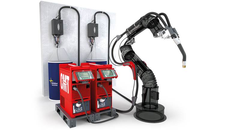 以成熟的Time Twin系统为基础升级而来的 CMT TWIN 焊接协同配备两个焊接电源、一把焊枪以及两个相互独绝缘的导电嘴(主弧与从弧)。除了具备CMT工艺优势外,CMT TWIN焊接系统还具备更高的焊接速度和很好的焊接过程控制性。